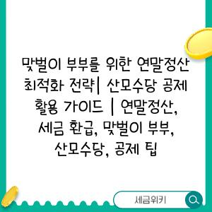 맞벌이 부부를 위한 연말정산 최적화 전략 | 산모수당 공제 활용 가이드 | 연말정산, 세금 환급, 맞벌이 부부, 산모수당, 공제 팁