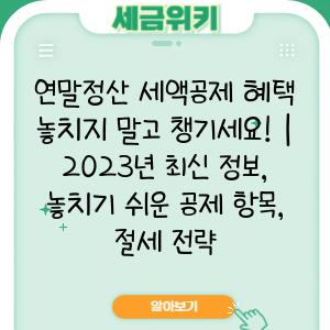 연말정산 세액공제 혜택 놓치지 말고 챙기세요! | 2023년 최신 정보, 놓치기 쉬운 공제 항목, 절세 전략