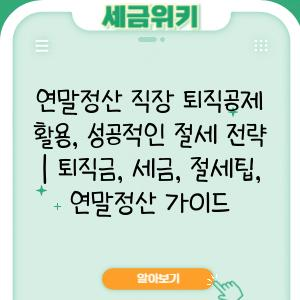 연말정산 직장 퇴직공제 활용, 성공적인 절세 전략 | 퇴직금, 세금, 절세팁, 연말정산 가이드