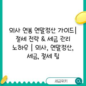 질문. 의사 연봉 연말정산 가이드| 절세 전략 & 세금 관리 노하우 | 의사, 연말정산, 세금, 절세 팁에 대해 알려주는 사이트나 자료는 어디에서 찾을 수 있나요?
