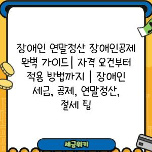 장애인 연말정산 장애인공제 완벽 가이드| 자격 요건부터 적용 방법까지 | 장애인 세금, 공제, 연말정산, 절세 팁