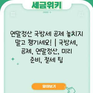 연말정산 국방세 공제, 제대로 알고 챙기세요! | 국방세, 공제, 연말정산 가이드