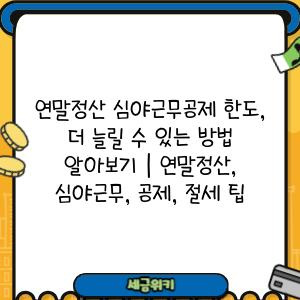 연말정산 심야근무공제 한도, 더 늘릴 수 있는 방법 알아보기 | 연말정산, 심야근무, 공제, 절세 팁