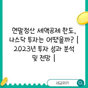 연말정산 세액공제 한도, 나스닥 투자는 어땠을까? | 2023년 투자 성과 분석 및 전망 |