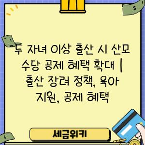두 자녀 이상 출산 시 산모 수당 공제 혜택 확대 | 출산 장려 정책, 육아 지원, 공제 혜택