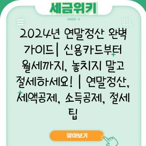 2024년 연말정산 완벽 가이드| 신용카드부터 월세까지, 놓치지 말고 절세하세요! | 연말정산, 세액공제, 소득공제, 절세 팁