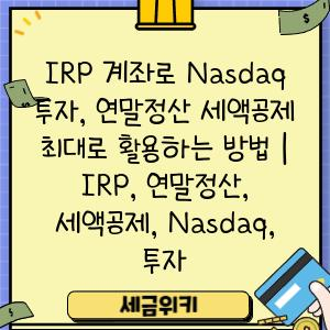 IRP 계좌로 Nasdaq 투자, 연말정산 세액공제 최대로 활용하는 방법 | IRP, 연말정산, 세액공제, Nasdaq, 투자