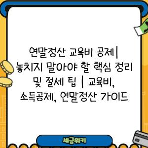 연말정산 교육비 공제| 놓치지 말아야 할 핵심 정리 및 절세 팁 | 교육비, 소득공제, 연말정산 가이드