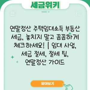 연말정산 주택임대소득 부동산 세금, 놓치지 말고 꼼꼼하게 체크하세요! | 임대 사업, 세금 절세, 절세 팁, 연말정산 가이드